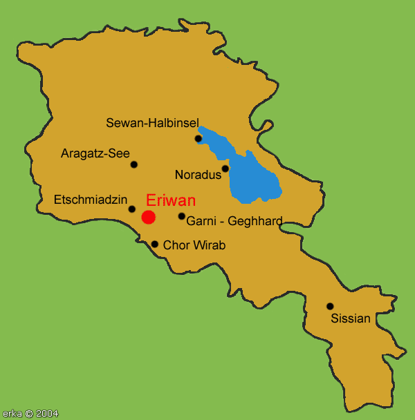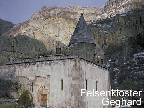 Startseite Armenien: Dramatische Landschaften- herrliche Klöster Diese einwöchige Studienreise ist ideal zum ersten Kennen lernen des Landes, zum Reinschnuppern sozusagen. Wir zeigen Ihnen die wichtigsten Sehenswürdigkeiten, führen Sie durch aufregend schöne Landschaften und geben Ihnen einen interessanten Einblick in die Kultur Armeniens, das im Jahr 301 als erster Staat das Christentum offiziell einführte. Sie sehen mittelalterliche Kirchen und Klöster, werden fasziniert sein vom Anblick des Ararat, einem der eindrucksvollsten Berge unseres Kulturkreises. Stammquartier der Reise ist die armenische Hauptstadt, eine Übernachtung im Land. 1. Tag: Anreise Flug nach Eriwan, Transfer ins Hotel, Übernachtung in Eriwan. 2. Tag: Eriwan und Etschmiadzin Bei einer Stadtrundfahrt besichtigen Sie das Historische Museum, das Genozid-Mahnmal und die einmalige Handschriftensammlung Matenadaran. Am Nachmittag fahren Sie nach Etschmiadsin, dem Zentrum der armenischen apostolischen Kirche. Neben den Kirchen Gajane und Hripsime besuchen Sie die Kathedrale mit ihrer Schatzkammer. In der Nähe liegt ein interessanter Friedhof, in dem nur Kleriker beerdigt werden dürfen. Am Abend laden wir Sie in einen Maran-Weinkeller zu einer armenischen Tafel ein, begleitet von einem ausgezeichneten Volksmusik Ensemble. Übernachtung in Eriwan. 3. Tag: Das Kloster vor dem Ararat Am frühen Morgen besichtigen Sie das Kloster Chor Wirab in der Araxes-Ebene. Fotografen schätzen den einmaligen Blick auf den Ararat, der sich im Hochsommer allerdings fast nur um die Zeit des Sonnenaufgangs zeigt. Es folgt eine eindrucksvolle Fahrt nach Südarmenien über Wüstengebirge, herrliche Pässe und durch wilde Schluchten. Am Ende einer Seitenschlucht des Arpa-Tales liegt vor einer schroffen Felskulisse das Kloster Noravank. Ziel der Tagestour ist der Höhen-Kurort Djermuk, von dem das bekannteste armenische Mineralwasser stammt. Übernachtung in Djermuk. 4. Tag: Steinkreise und Höhlenstadt Zuerst besichtigen Sie die Steinkreise von Sissian, eine vorgeschichtliche, astrologische Kult- und Forschungsstätte. Danach fahren Sie zur pittoresquen Höhlenstadt Chendsoresk in der Nähe der Grenze zu Berg-Karabach, am Nachmittag durch eine grandiose Schlucht zum einmalig schön gelegenen Kloster Tatev. Am Abend fahren Sie zurück nach Eriwan, bei schöner Sicht immer wieder geleitet vom Ararat, dem Berg, der nahezu ganz Armenien be-herrscht. Übernachtung in Eriwan. 5. Tag: Der Sewan-See Tagesausflug zum Sewansee, einen der größten Hochgebirgsseen (1.900 m) der Welt. Sie besichtigen das Sewan-Kloster, das eindrucksvoll auf einer kleinen Halbinsel liegt. Im Dörfchen Noraduz besuchen Sie einen der schönsten Friedhöfe des Landes mit nahezu 1.000 Kreuzsteinen vom 12. Jahrhundert bis heute. Übernachtung in Eriwan. 6. Tag: Felsenkloster und Griechentempel Sie fahren zum Felsenkloster Geghard, einem der schönsten Klosterensembles des Kaukasus. Viele armenische Familien kommen am Sonntag hierher, um nach einem Kirchenbesuch Familiengedenktage oder religiöse Feiertage mit einem Opfermahl auf dem Klostergelände zu begehen. Auf dem Rückweg besichtigen Sie in Garni am ehemaligen Sitz der armenischen Könige einen hellenistischen Tempel, der nach einem Erdbeben originalgetreu wiederaufgebaut wurde. Am späten Nachmittag bleibt noch genügend Zeit, im Zentrum von Eriwan zu bummeln. Übernachtung in Eriwan. 7. Tag: Das Aragatz-Gebirge Sie fahren in den Norden ins Aragatz-Gebirge zur Festung Hamberd, die eindrucksvoll auf einer Felsnase über einer tiefen Schlucht liegt. Am Nachmittag fahren Sie zu einem 3.000 m hoch gelegenen Bergsee am Fuße des Aragatz, vorbei an unzähligen Zeltdörfern nomadierender Wanderhirten. Meist handelt es sich um Angehörige einer ethnischen Minderheit, den Jesiden. Auf dem Rückweg besichtigen Sie noch die Kirchen Samossawank und Howannawank. Abschiedsabend und Übernachtung in Eriwan. 8. Tag: Rückreise Transfer zum Flughafen, Rückflug Unsere Leistungen: Hin- und Rückflug nach Eriwan; alle Transfers; Unterbringung: DZ mit Halbpension in Eriwan in einem landesüblichen ***-Hotel (andere Hotelkategorie oder EZ gegen Aufpreis), im Land in landesüblichen guten Hotels oder Privatpensionen. Alle Eintritte für Kirchen und Museen, qualifizierte deutschsprachige Reiseleitung. Beste Reisezeit: April bis Oktober Individuelle Termine: jederzeit auf Anfrage Pauschalpreis pro Person: EUR 1.690,-- (Gruppengröße: 6 Personen) Preise für weitere Gruppengrößen auf Anfrage Zusatzkosten: Visagebühren, Flughafensteuern und Sicherheitsgebühren Einzelzimmerzuschlag Buchung per e-mail:  |