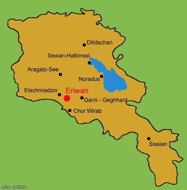 |   Startseite Armenien: Auf Schusters Rappen zu den schönsten Plätzen 1. Tag: Anreise nach Erewan Flug FRA-YER, Transfer zum Hotel, Begrüßungsabend. Übernachtung in Erewan (3 Nächte). 2. Tag: Stadtrundfahrt Erewan Sie besichtigen u.a. das Handschriftenmuseum Matenadaran, die urartäische Festung Erebuni mit interessanten Keilschrifttafeln, das Genozid-Mahnmal und den Rundtempel von Swartnoz. Am Abend laden wir Sie zu einem armenischen Tisch mit einem ausgezeichneten Volksmusikensemble ein. 3. Tag: Wanderung nach Geghard Sie fahren ins Gegam-Gebirge westlich von Erewan zum früheren Sitz der armenischen Könige Garni. Dort besichtigen Sie einen griechischen Tempel, bevor Sie unsere 1. Wanderung durch das wilde Awutz-Tal zum Felsenkloster Geghard führt, einem der schönsten Klosterensembles Armeniens. 4. Tag: Zum Sewansee Am Vormittag besichtigen Sie das Historische Museum, bevor Sie mit dem Bus zum Sewansee fahren. Im Dörfchen Noraduz führt ein kleiner Spaziergang zum wunderschönen Friedhof mit seinen rund 1000 Kreuzsteinen. Den Abend verbringen Sie in einem Hotel am Sewansee. Übernachtung am Sewan-See. 5. Tag: Wanderung nach Goschawank Über den Sewanpass fahren Sie zunächst zum Kurort Dilidschan. Von hier führt unsere 2. Wanderung durch das Naturschutzgebiet Dilidschan zum Pars Litsch (Klarer See) und dann zum Kloster Goschawank. Übernachtung in Dilidschan. 6. Tag: Zyklopenmauern und Höhlen Sie fahren nach Idschewan. Unsere 3. Wanderung ( Dauer ca. 6 Stunden) führt durch die schöne Umgebung von Dilidschan, vorbei an Zyklopenmauern und alte Höhlen. Übernachtung in Dilidschan, Transfer Alaverdi. Übernachtung in Alaverdi. 7. Tag: Die Klöster von Alaverdi Über der Industriestadt Alaverdi sind drei der schönsten Klosteranlagen Armeniens zu sehen: Odzoun, Haghpat und Sanahin. Eine der Anlagen werden Sie sich erwandern, die beiden anderen, sofern die Zeit reicht, mit dem Bus ansteuern. Übernachtung in Alaverdi. 8. Tag: Über den Selimpass nach Süden Sie fahren am Sewansee entlang Richtung Süden auf den Selimpass (2.410 m). Bei guter Fernsicht können Sie von hier aus sogar die Spitze des Ararat sehen. Von der Stadt Echegnadzor führt die 4. Wanderung (ca, 5 Stunden) zur Kirche Spitakawor und. Weiterfahrt nach Djermuk, Übernachtung in Djermuk. 9. Tag: Wanderung zur Kirche Gndewank Wanderung zur Kirche Gndewank, Übernachtung in Djermuk 10. Tag: Durch die Vorotan-Schlucht Mit dem Bus gelangen Sie zunächst ins Gebirgsstädtchen Sissian, von wo aus unsere 6. Wanderung zum eindrucksvoll gelegenen Kloster Tatev führt. Der Weg führt über das Dörfchen Chot, durch die herrliche Schlucht des Flusses Vorotan zum Kloster. Übernachtung in Sissian. 11. Tag: Wanderung zum Kloster Norawank Über Areni fahren wir nach Eriwan, nicht ohne vorher in einer Wanderung das Kloster Norawank besucht zu haben. Übernachtung in Eriwan. 12. Tag: Etschmiadzin Sie besichtigen die Kathedrale Etschmiadzin, den Sitz des armeni-schen Patriarchen. Außerdem die Kirchen Hripsime und Gajane, dazu einen wunderschönen Friedhof, in dem nur Kleriker beerdigt werden dürfen. Übernachtung in Eriwan. 13. Tag: Wanderung im Aragatz Eine schöne Wanderung führt vom Dorf Bjurakan zur Festung Hamberd und von dort ins Aragatz-Gebirge. Sie treffen unterwegs immer wieder auf jessidische Wandernomaden. Übernachtung in Eriwan. 14. Tag: Das Kloster am Ararat Wenn Sie den Ararat noch nicht ausführlich genossen haben, sollten Sie frühmorgens mit uns hinausfahren zum Kloster Chor Wirab, das einen der schönsten Blicke auf diesen außergewöhnlichen Berg bietet. Am Nachmittag steht Ihnen ausreichend Zeit zu einem letzen Einkaufsbummel in Erewan zur Verfügung. 15. Tag: Rückflug Transfer zum Flughafen, Rückflug YER-FRA. Wichtiger Hinweis: Diese Studienreise beinhaltet neun mittelschwere Wanderungen zu den jeweiligen Sehenswürdigkeiten. Dabei durchwandern Sie eindrucksvolle Landschaften. Gute Wanderkondition wird vorausgesetzt. Komfortverzicht bei der Privatübernachtung in Tatev. Leistungen -Flug in der Touristenklasse nach Erewan und zurück. -Unterbringung im Doppelzimmer (Einzelzimmer gegen Aufpreis möglich) -alle Transfers -Halbpension -qualifizierte, deutschsprachige Reiseleitung und Führung -Eintritte und lokale Führungen Individuelle Termine: jederzeit auf Anfrage Pauschalpreis pro Person: EUR 2.525,-- (Gruppengröße: 6 Personen) Preise für weitere Gruppengrößen auf Anfrage Zusatzkosten: Visagebühren, Flughafensteuern und Sicherheitsgebühren Einzelzimmerzuschlag Buchung per e-mail:
