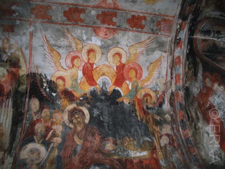 Ikonen und archaischen Fresken, eine der schönsten übrigens auf dem Gehöft