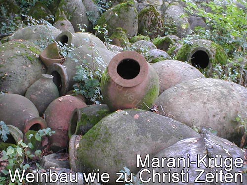 Nach einem gemütlichen Vormittag in Telawi besichtigen wir zunächst das schöne Kirchenensemble Alt Schuamta aus dem 7. - 11. Jahrhundert. Nach einem Picknick suchen wir einen Familien-Handwerksbetrieb auf, in dem die so genannten Kvevris hergestellt und gebrannt werden. Das sind große Tonamphoren, die im Boden eingelassen werden und in denen der Wein seit Jahrtausenden ausgebaut wird. Die Kvevri-Methode ist in den letzten Jahren auch vom gewerblichen Weinbau als Alleinstellungsmerkmal des georgischen Weins wieder entdeckt worden. Im Weingut Vinoterra, das der deutsche Unternehmer Schuchmann in den letzten Jahren investierte, stehen Kvevris neben modernsten Stahltanks. Das Weingut Schuchmann gilt als eines der Vorzeige-Unternehmen des modernen georgischen Weinbaus. Auch hier wartet neben dem reichhaltigen Abendessen eine ausführliche Weinprobe.